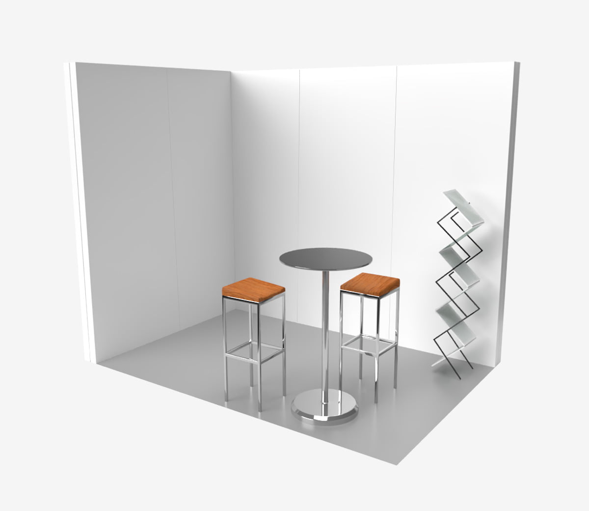 Stand en L 2 x 1 m, configuration en angle pour une visibilité sur deux faces.