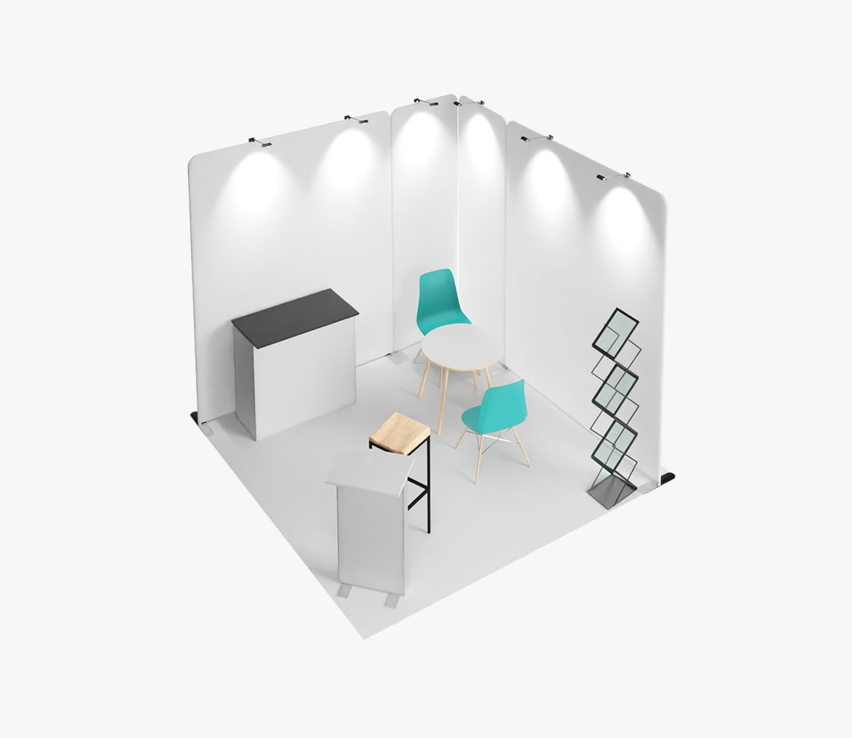 Stands semi-îlot, en L et en U pour vos espaces promotionnels.
